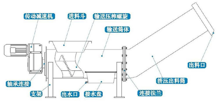 壓榨筒采用管式結(jié)構(gòu),強(qiáng)度高,耐擠壓,除進(jìn)出料口外均為密閉運(yùn)行。